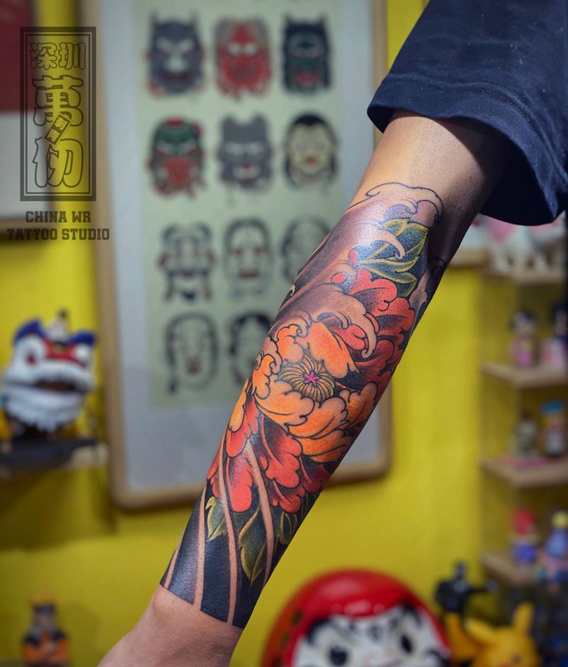 当前位置: 首页 >广东省深圳市纹身店-万仞刺青纹身图案>牡丹包小臂纹身图片_手臂新传统纹身图案