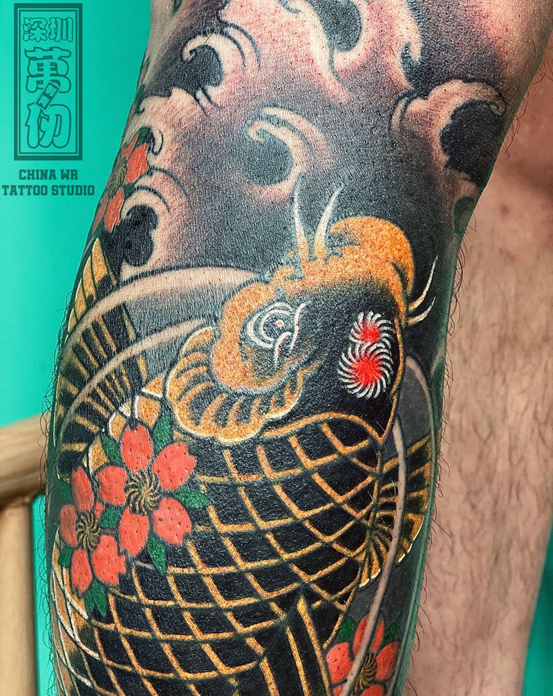 当前位置: 首页 >广东省深圳市纹身店-万仞刺青纹身图案>老传统 金鲤鱼纹身图片_腿部老传统纹身图案