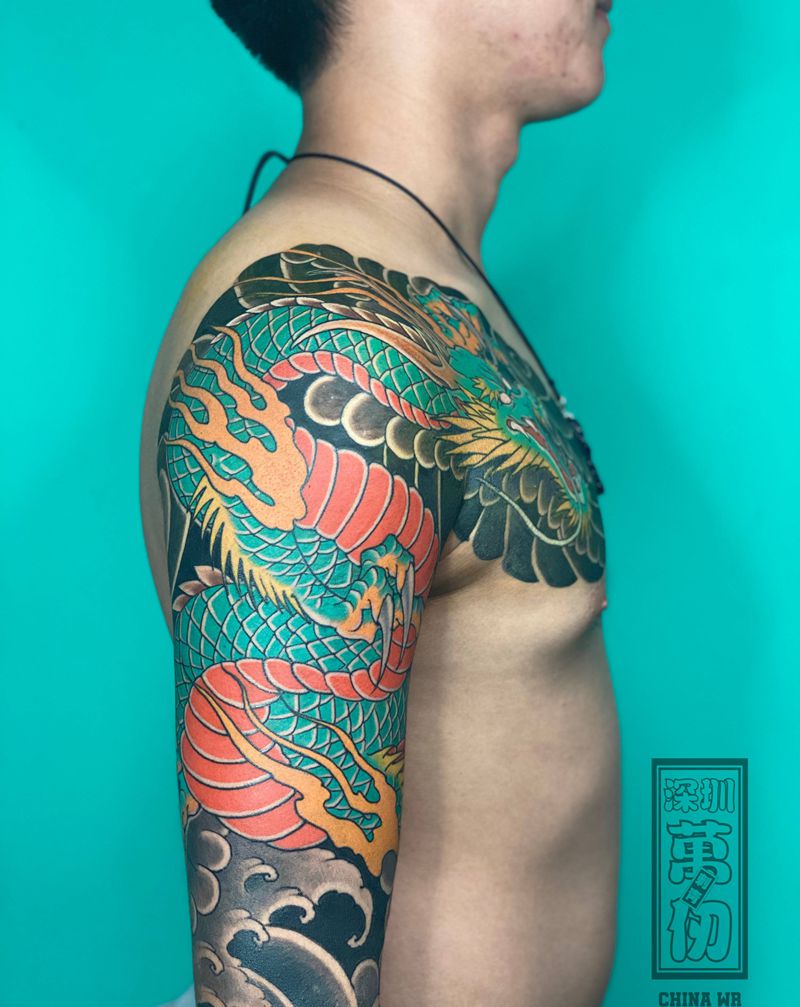 当前位置: 首页 >广东省深圳市纹身店-万仞刺青纹身图案>花臂小青龙纹身图片_手臂老传统纹身图案