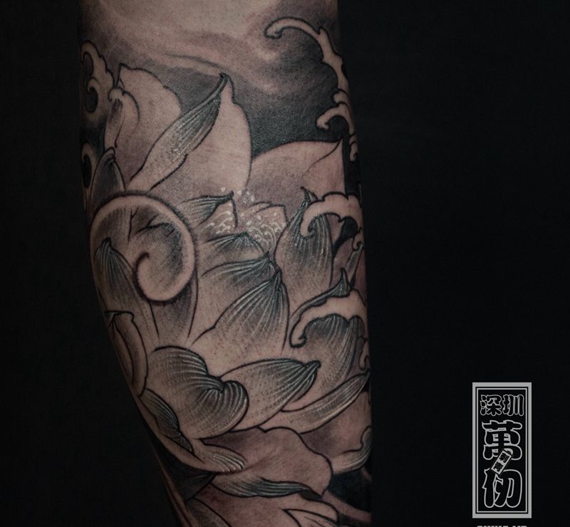 一组15张莲花纹身手