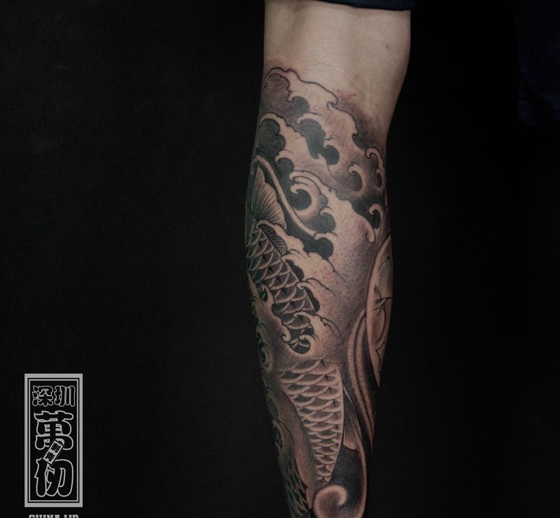 包小腿 锦鲤纹身图片_脚部新传统纹身图案
