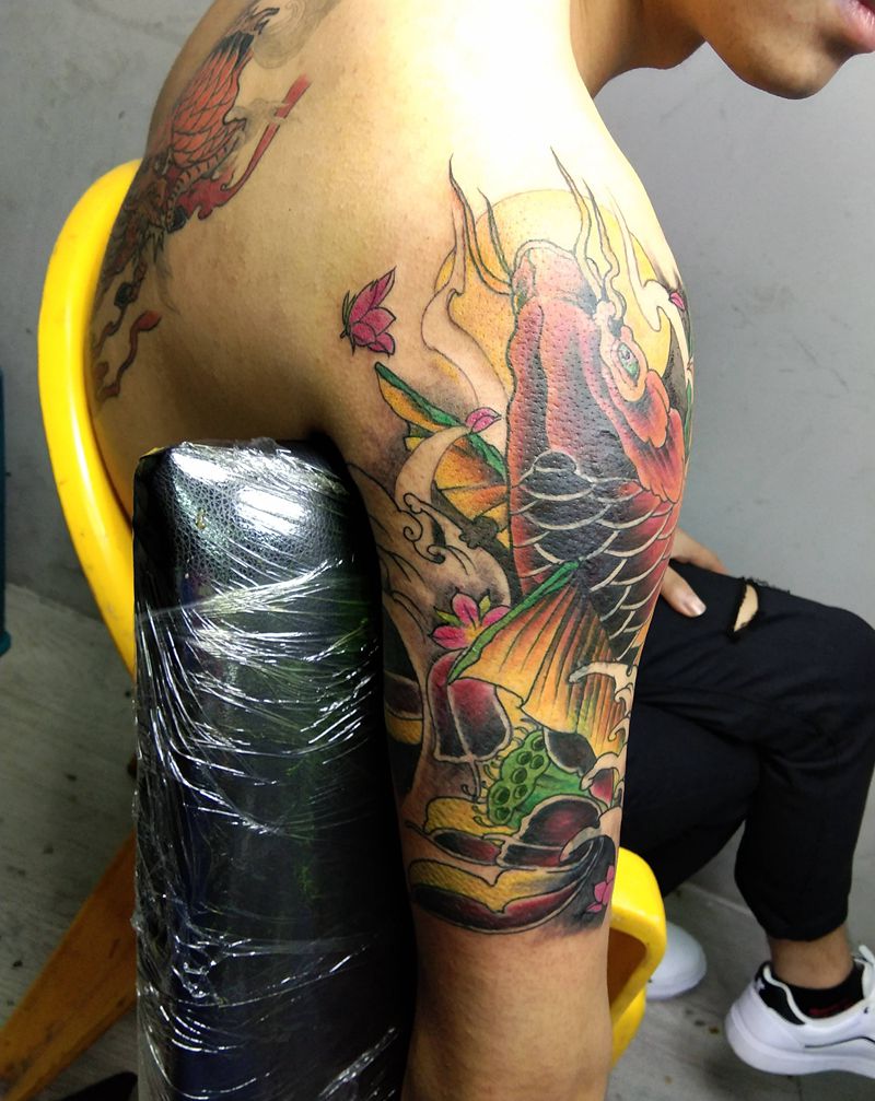 当前位置: 首页 >广东省深圳市纹身店-深圳石岩河滨纹身纹身图案>彩色鱼盖图。纹身图片_手臂纹身图案