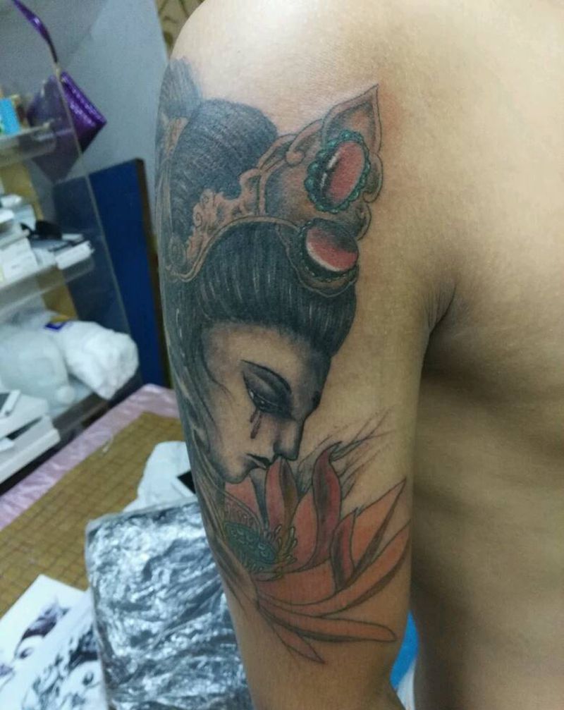 当前位置: 首页 >广东省深圳市纹身店-深圳石岩河滨纹身纹身图案>艺妓纹身图片
