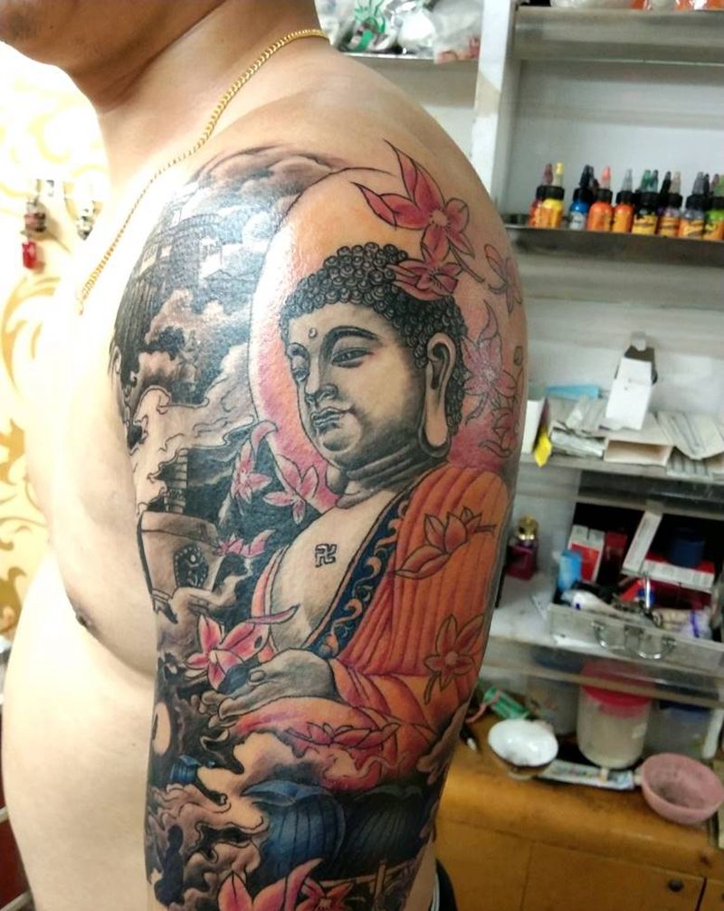 当前位置: 首页 >广东省深圳市纹身店-深圳石岩河滨纹身纹身图案>大臂佛。纹身图片