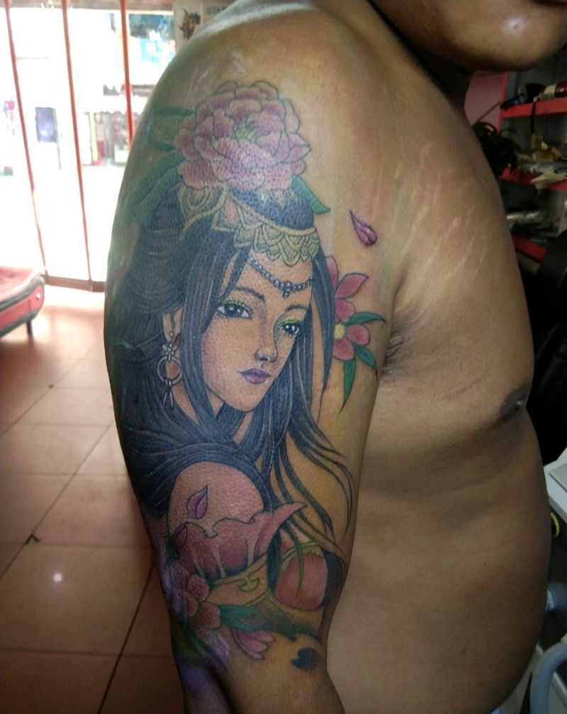 当前位置: 首页 >广东省深圳市纹身店-深圳石岩河滨纹身纹身图案>艺妓纹身图片_手臂纹身图案