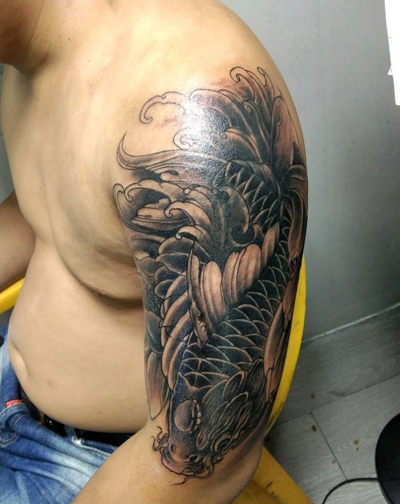 当前位置: 首页 >广东省深圳市纹身店-深圳石岩河滨纹身纹身图案>鱼盖图纹身图片_手臂纹身图案