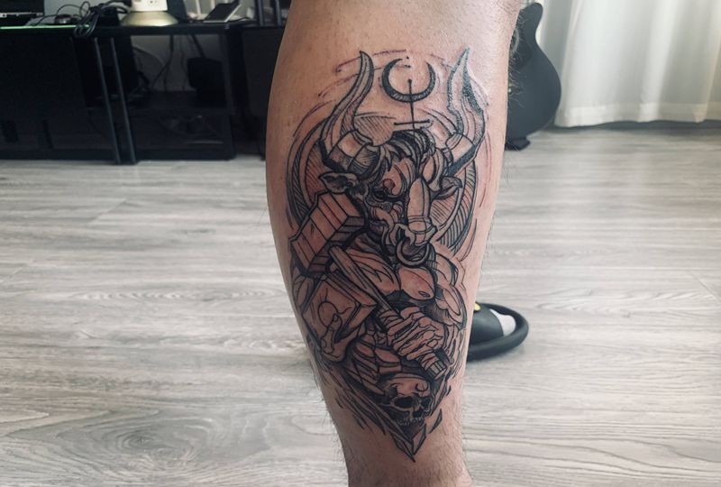 当前位置: 首页 >广东省深圳市纹身店-二次铭刻TATTOO工作室纹身图案>金牛座纹身图片_腿部几何点刺牛纹身图案