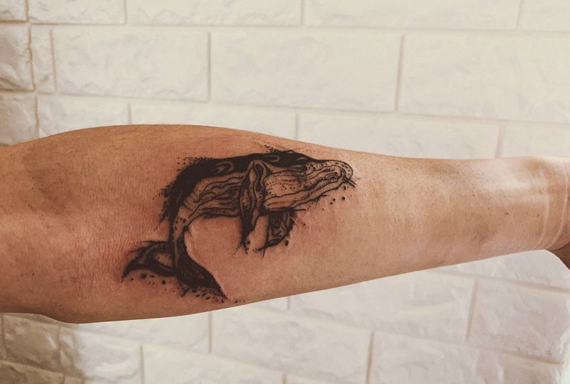 当前位置: 首页 >广东省深圳市纹身店-二次铭刻TATTOO工作室纹身图案>鲸鱼纹身图片_手臂点刺纹身图案