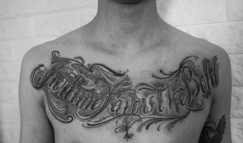当前位置: 首页 >广东省深圳市纹身店-二次铭刻TATTOO工作室纹身图案>胜者为王纹身图片_胸部花体字纹身图案