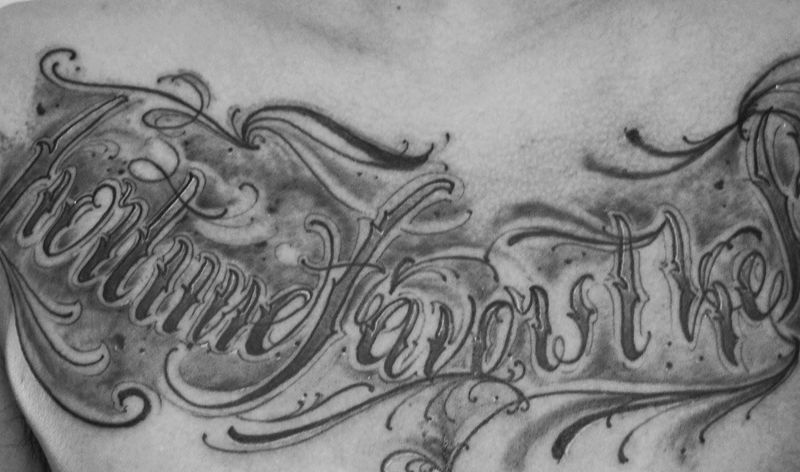 当前位置: 首页 >广东省深圳市纹身店-二次铭刻TATTOO工作室纹身图案>胜者为王纹身图片_胸部花体字纹身图案
