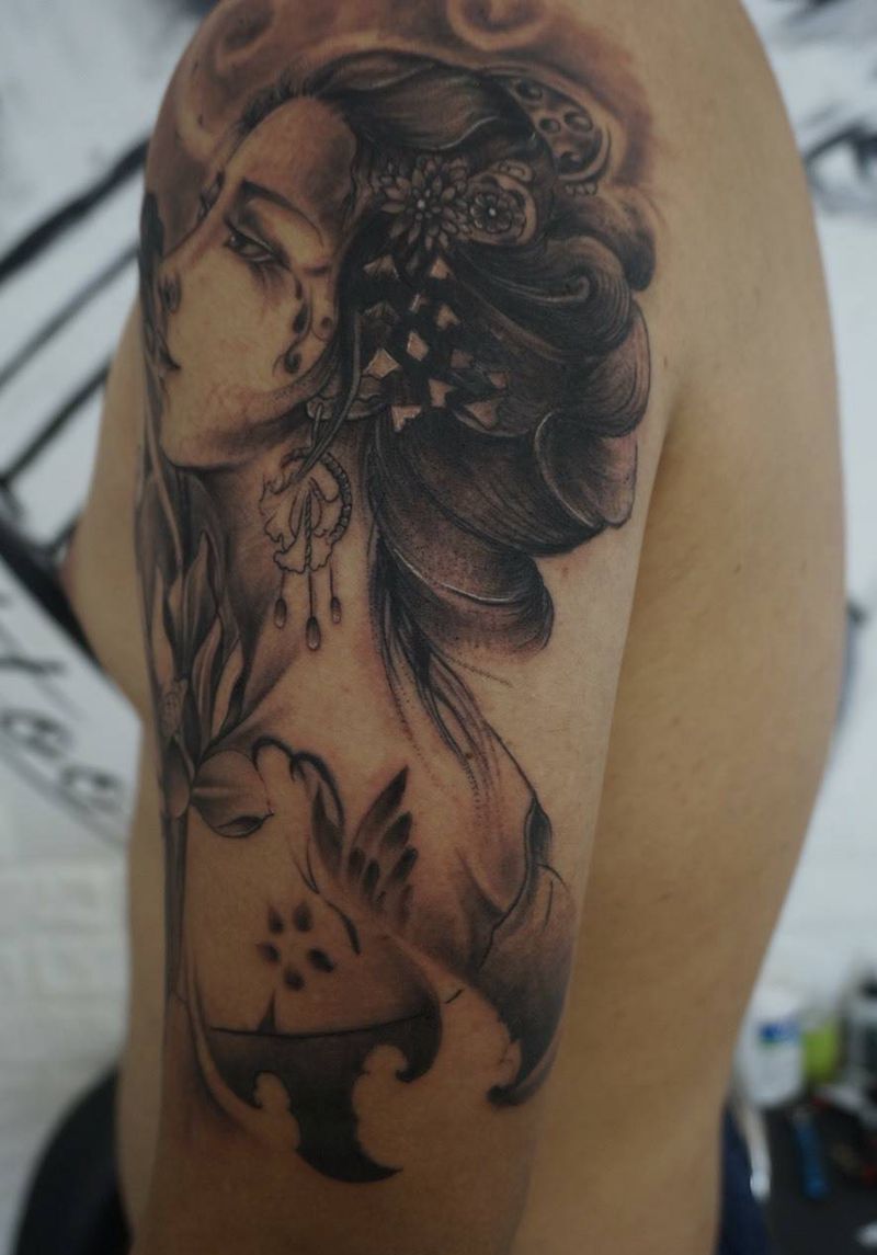 • 纹身吧推荐的披肩图腾半胛纹身图案作品展示