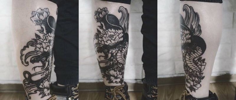 黑灰满背纹身图案