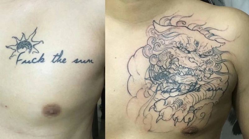 唐狮遮盖纹身图片