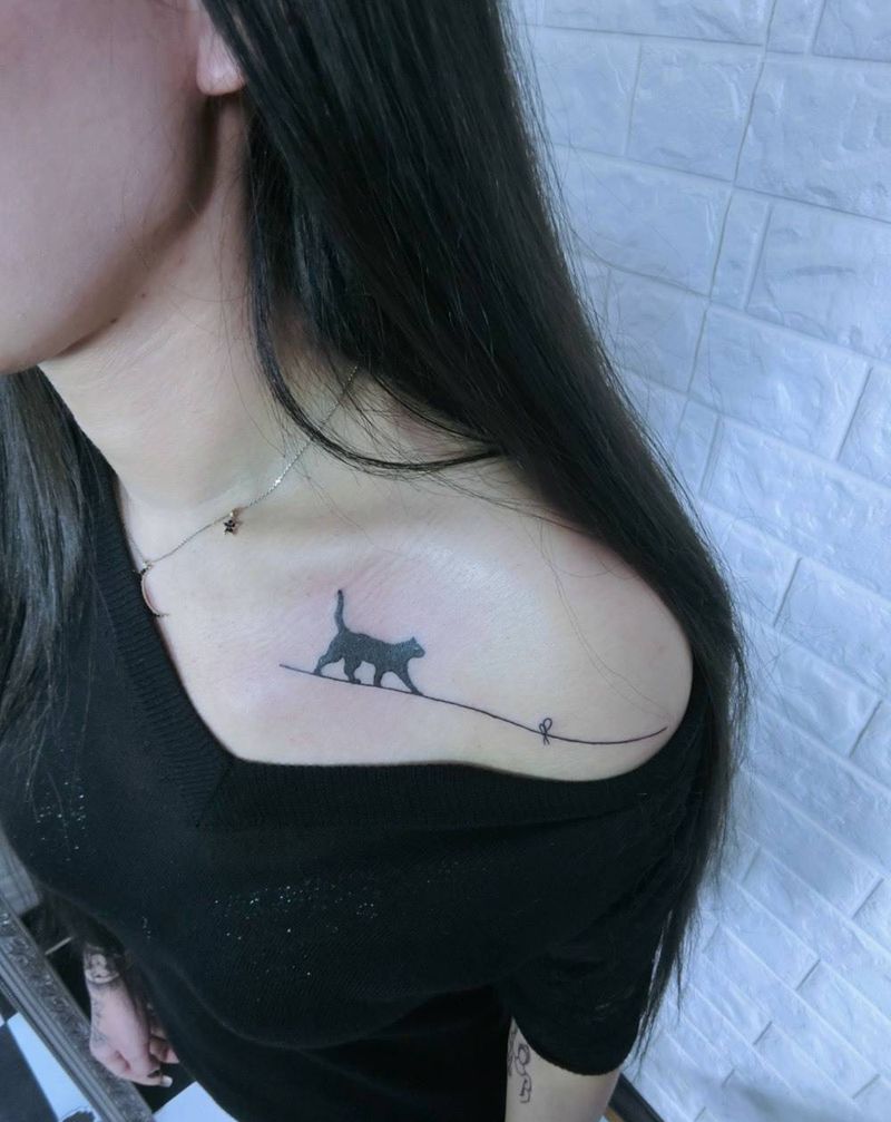 走线的猫纹身图片