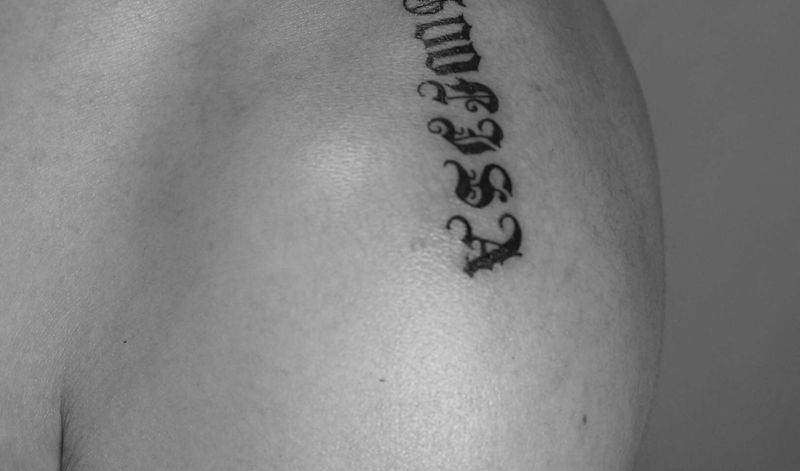 当前位置: 首页 >广东省深圳市纹身店-二次铭刻TATTOO工作室纹身图案>哥特字纹身图片_肩部花体字纹身图案