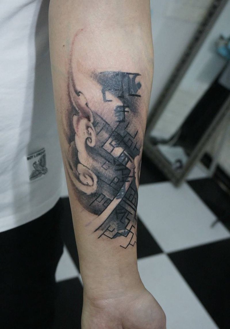 当前位置: 首页 >广东省深圳市纹身店-二次铭刻TATTOO工作室纹身图案>遮盖纹身图片_手臂水墨纹身图案
