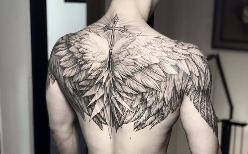 黑灰满背纹身图案