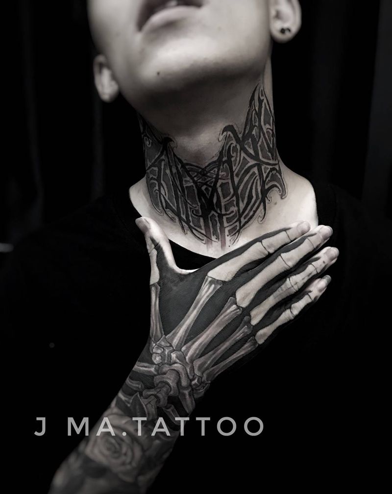 当前位置: 首页 >广东省深圳市纹身店-J Ma.Tattoo纹身图案>花体字纹身图片_颈部手部花体字纹身图案