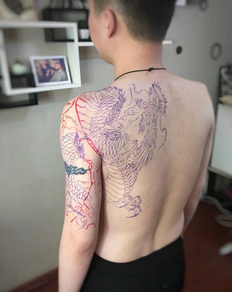 过肩龙 半臂遮盖到背纹身图片_肩部背部手臂传统动物纹身图案