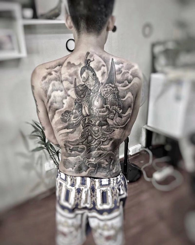 • 黑灰满背纹身图案