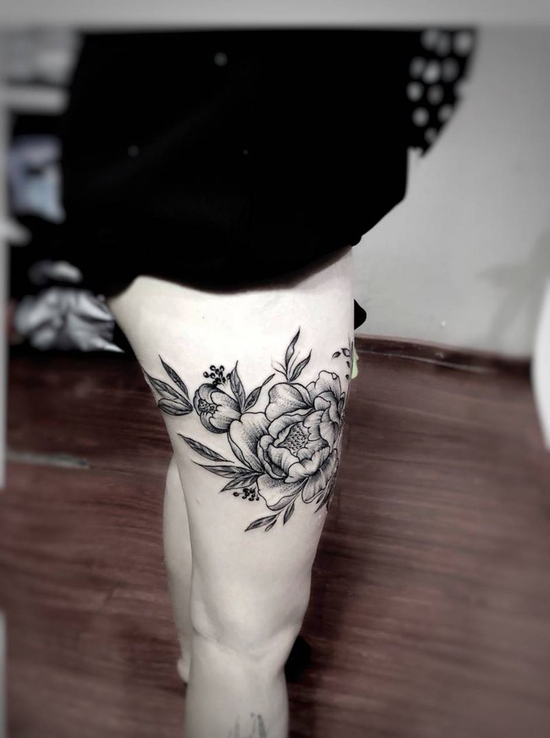 当前位置: 首页 >广东省深圳市纹身店-峰刺青纹身工作室纹身图案>牡丹纹身图片_腿部点刺欧美写实花纹身图案