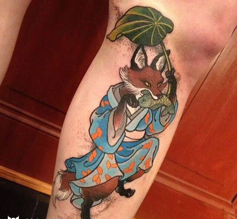 • T包小腿吹火男+阿多福纹身图片_腿部老传统新传统吹火男阿