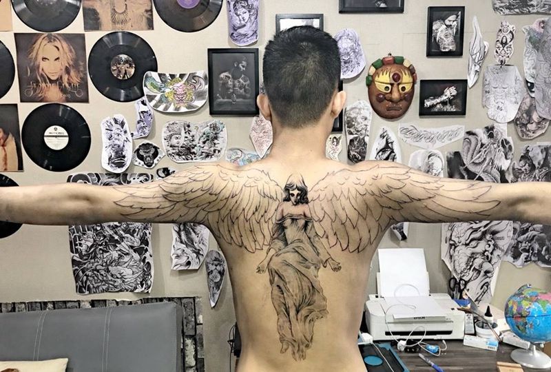 当前位置: 首页 >广东省深圳市纹身店-峰刺青纹身工作室纹身图案>天使 未完成纹身图片_背部欧美肖像人物原创纹身图案