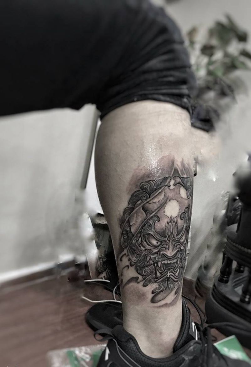• T网红王老大花腿龙纹身图片_腿部新传统纹身图案