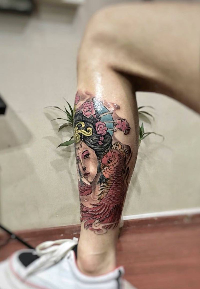 • T网红王老大花腿龙纹身图片_腿部新传统纹身图案