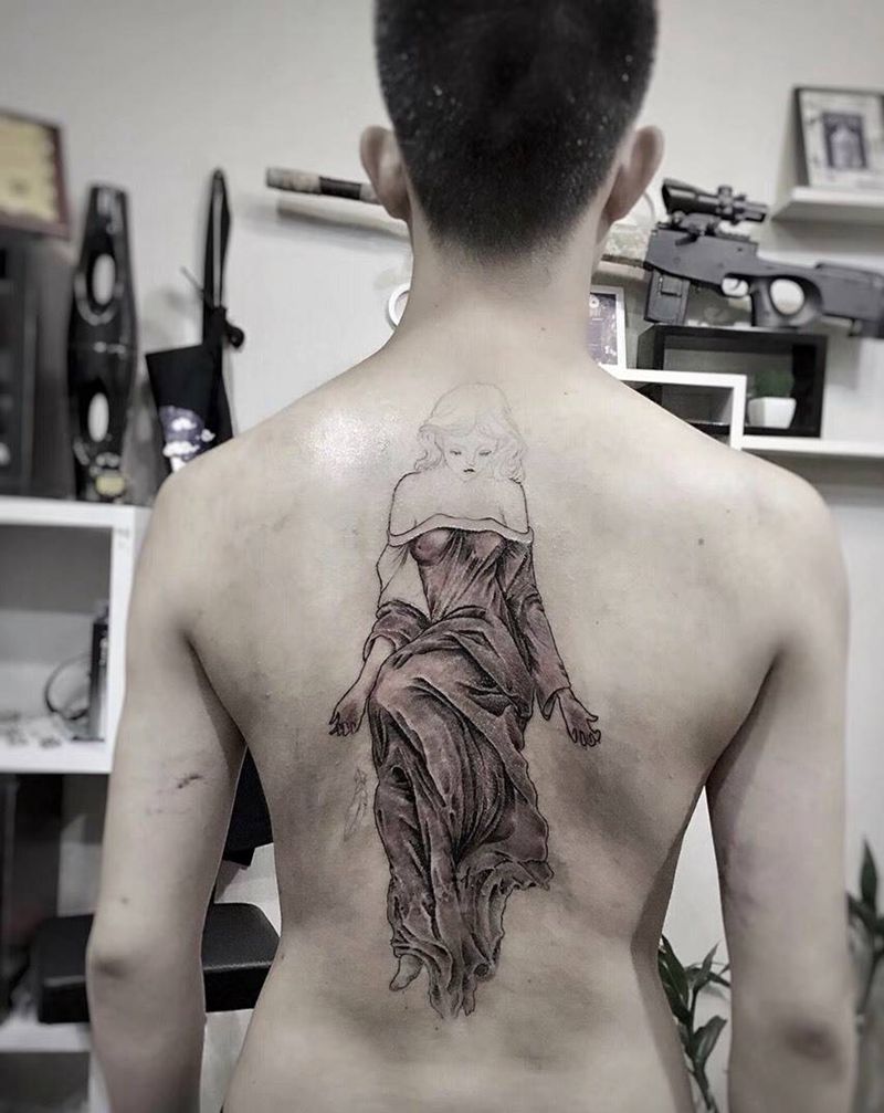 • 黑灰满背纹身图案