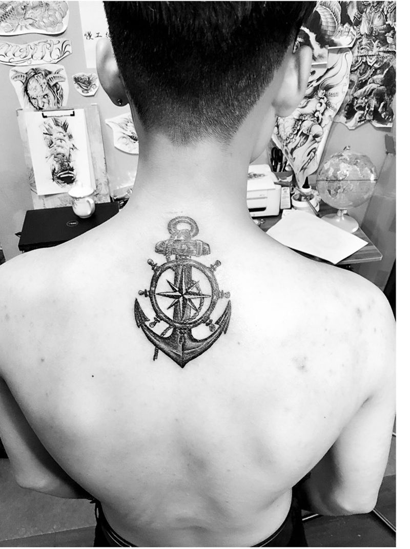 黑灰满背纹身图案