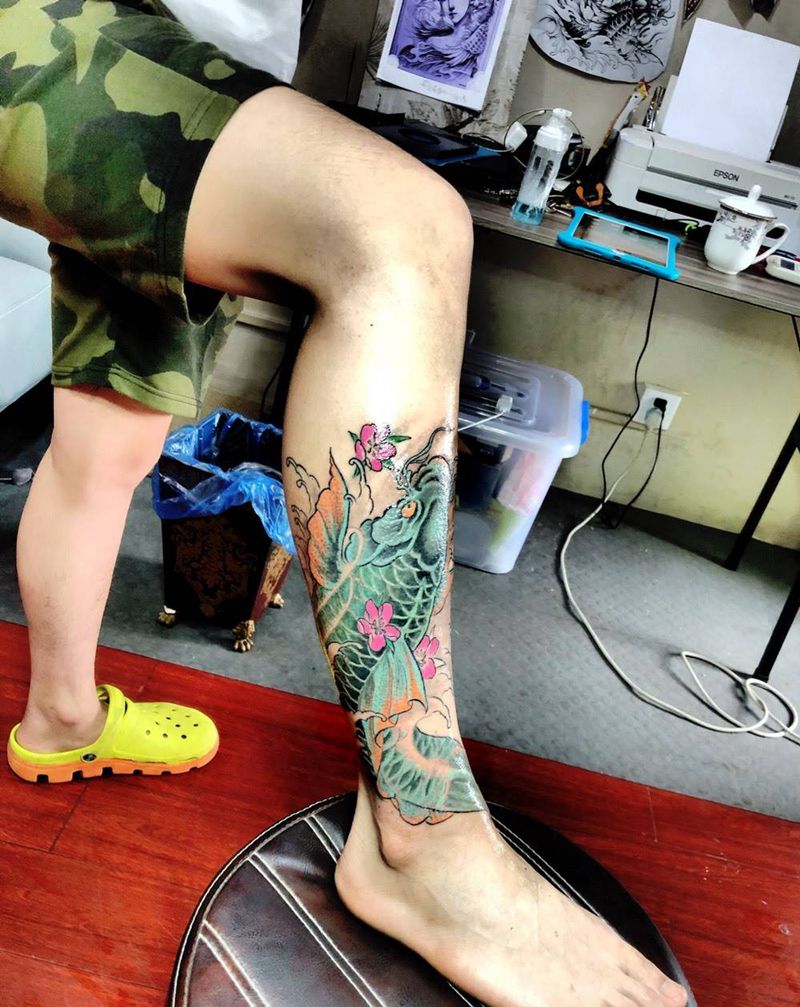 当前位置: 首页 >广东省深圳市纹身店-峰刺青纹身工作室纹身图案>小腿鲤鱼纹身图片_腿部新传统纹身图案