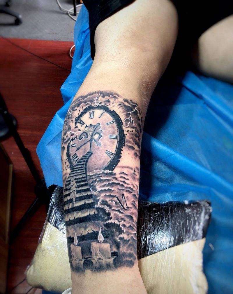 当前位置: 首页 >广东省深圳市纹身店-峰刺青纹身工作室纹身图案>时光纹身图片_腿部欧美写实时钟纹身图案