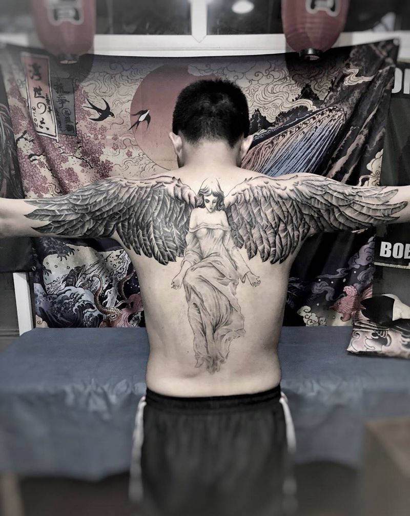 当前位置: 首页 >广东省深圳市纹身店-峰刺青纹身工作室纹身图案>天使 翅膀纹身图片_背部欧美写实点刺翅膀纹身图案