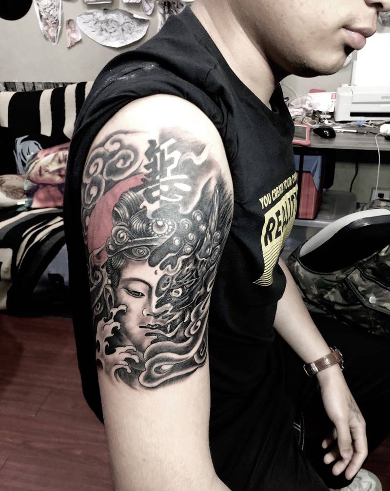 • 纹身吧推荐的披肩图腾半胛纹身图案作品展示