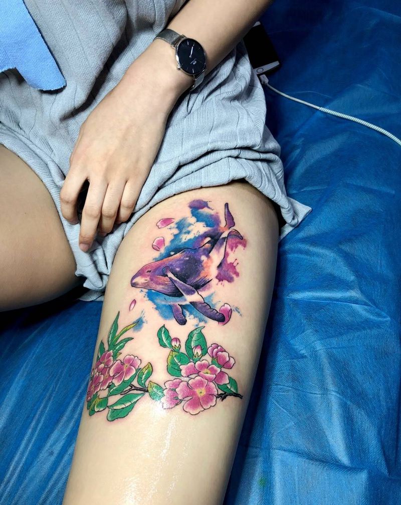 • T网红王老大花腿龙纹身图片_腿部新传统纹身图案
