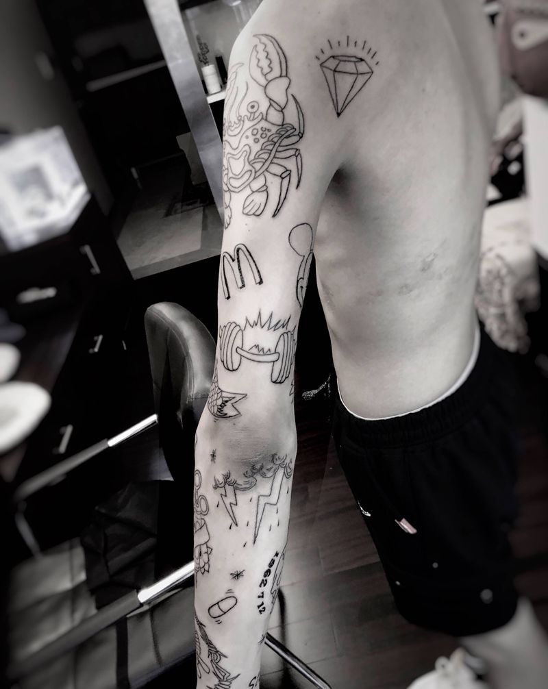 当前位置: 首页 >广东省深圳市纹身店-峰刺青纹身工作室纹身图案>拼接花臂 恢复后上色纹身图片_Old School纹身图案