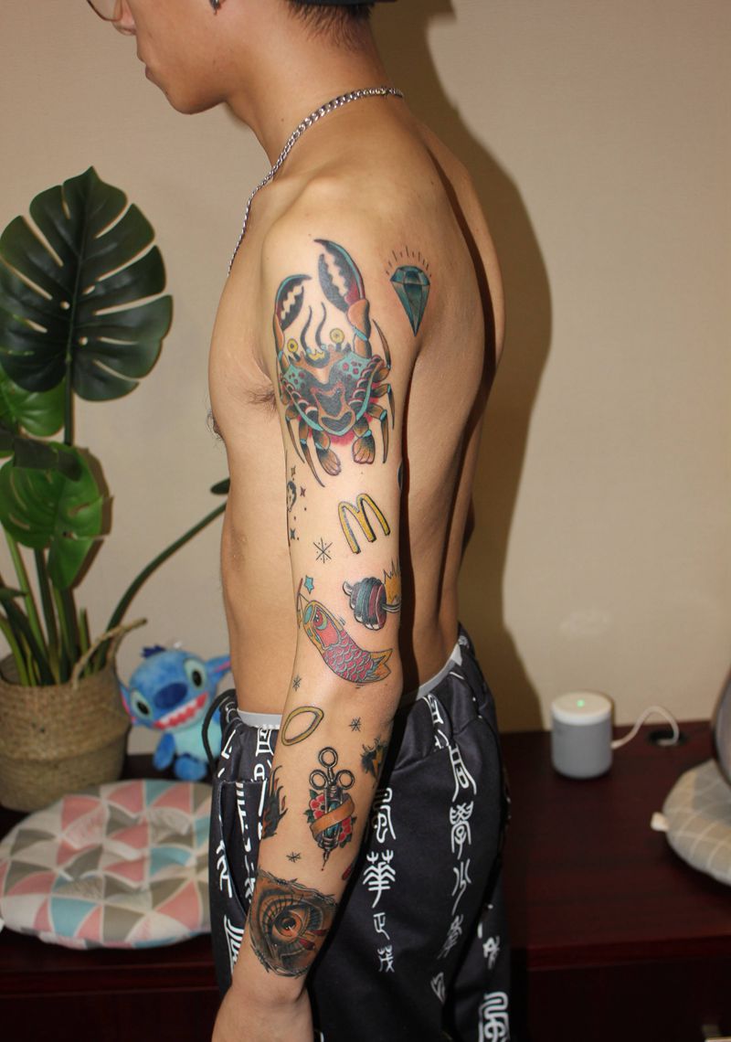当前位置: 首页 >广东省深圳市纹身店-峰刺青纹身工作室纹身图案>old school拼接花臂纹身图片_Old School纹身图案