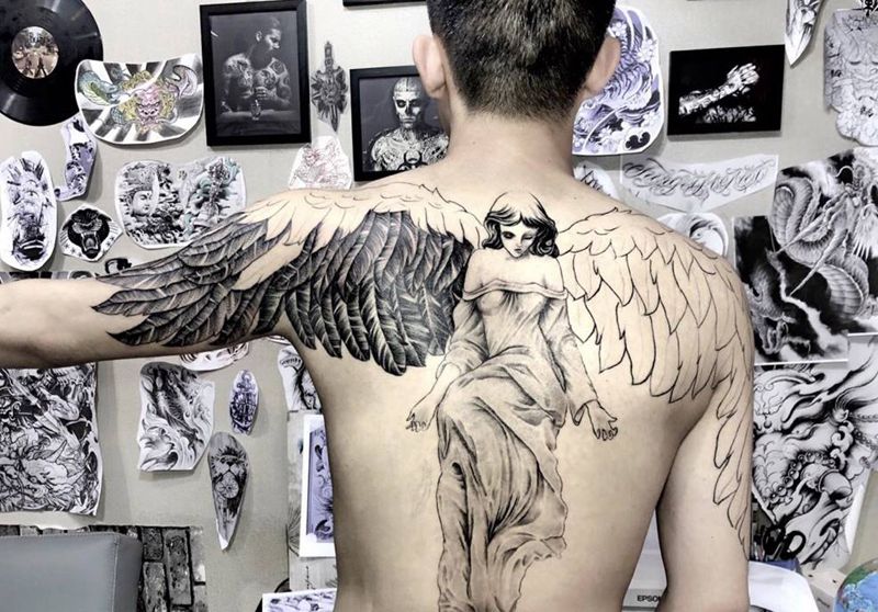 黑灰满背纹身图案