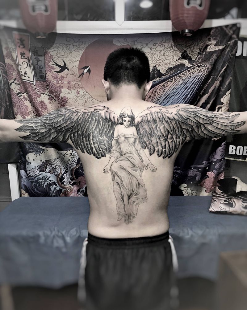 当前位置: 首页 >广东省深圳市纹身店-峰刺青纹身工作室纹身图案>天使纹身图片_欧美写实羽毛翅膀纹身图案