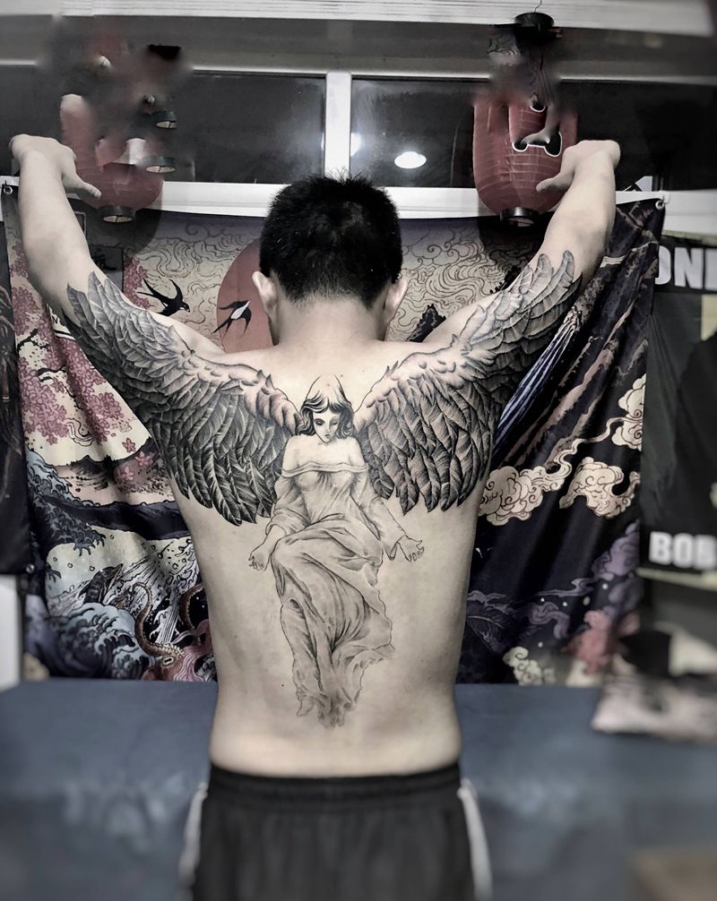 当前位置: 首页 >广东省深圳市纹身店-峰刺青纹身工作室纹身图案>天使纹身图片_欧美写实羽毛翅膀纹身图案
