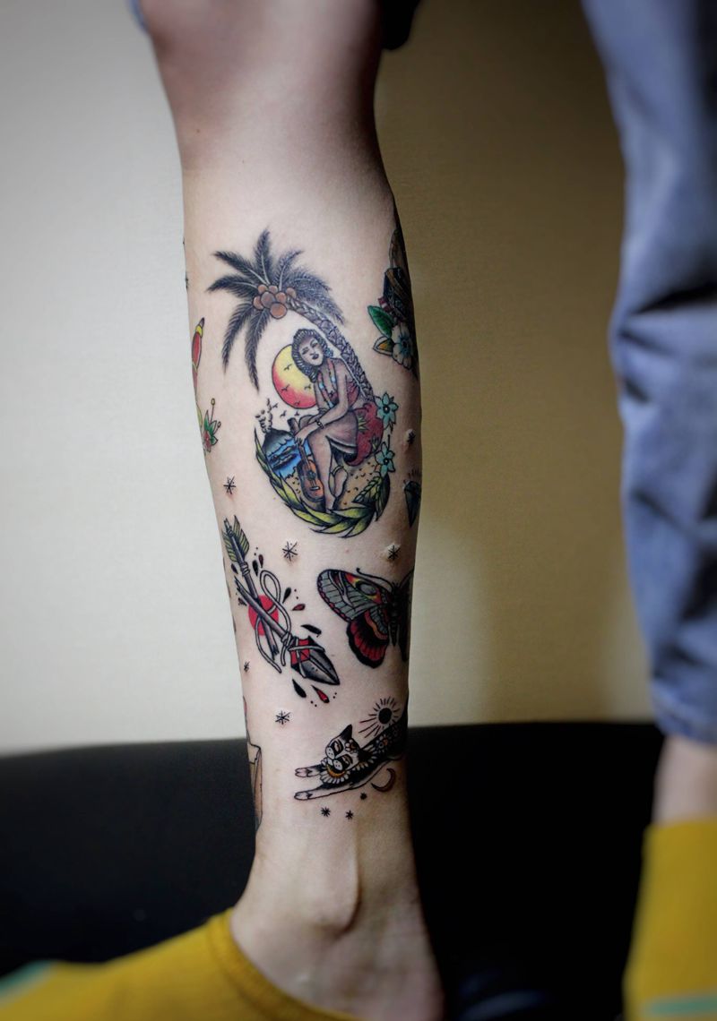 当前位置: 首页 >广东省深圳市纹身店-峰刺青纹身工作室纹身图案>花腿拼接纹身图片_Old School纹身图案