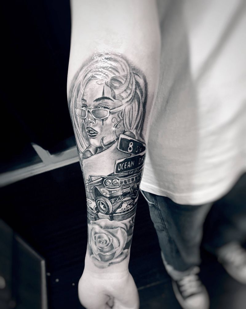 西海岸女郎纹身图片_手臂欧美写实纹身图案