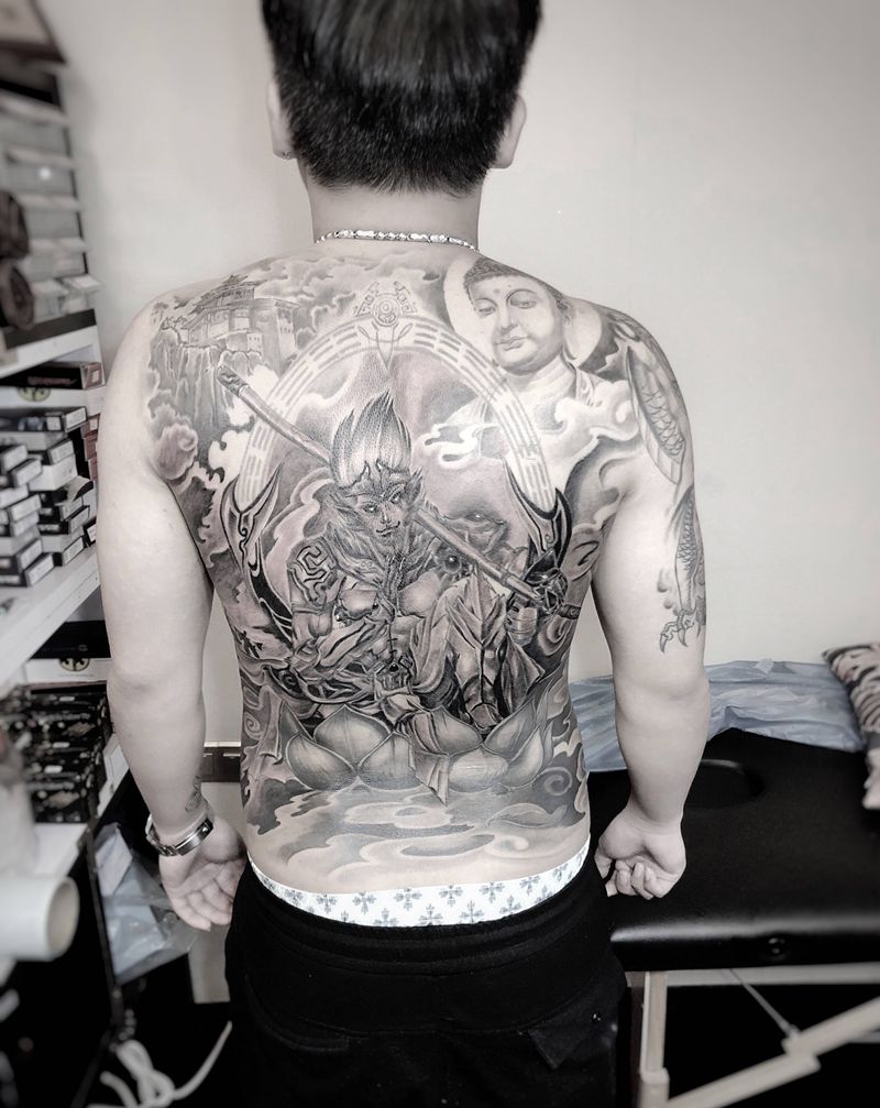 当前位置: 首页 >广东省深圳市纹身店-峰刺青纹身工作室纹身图案>满背修改纹身图片_背部新传统纹身图案