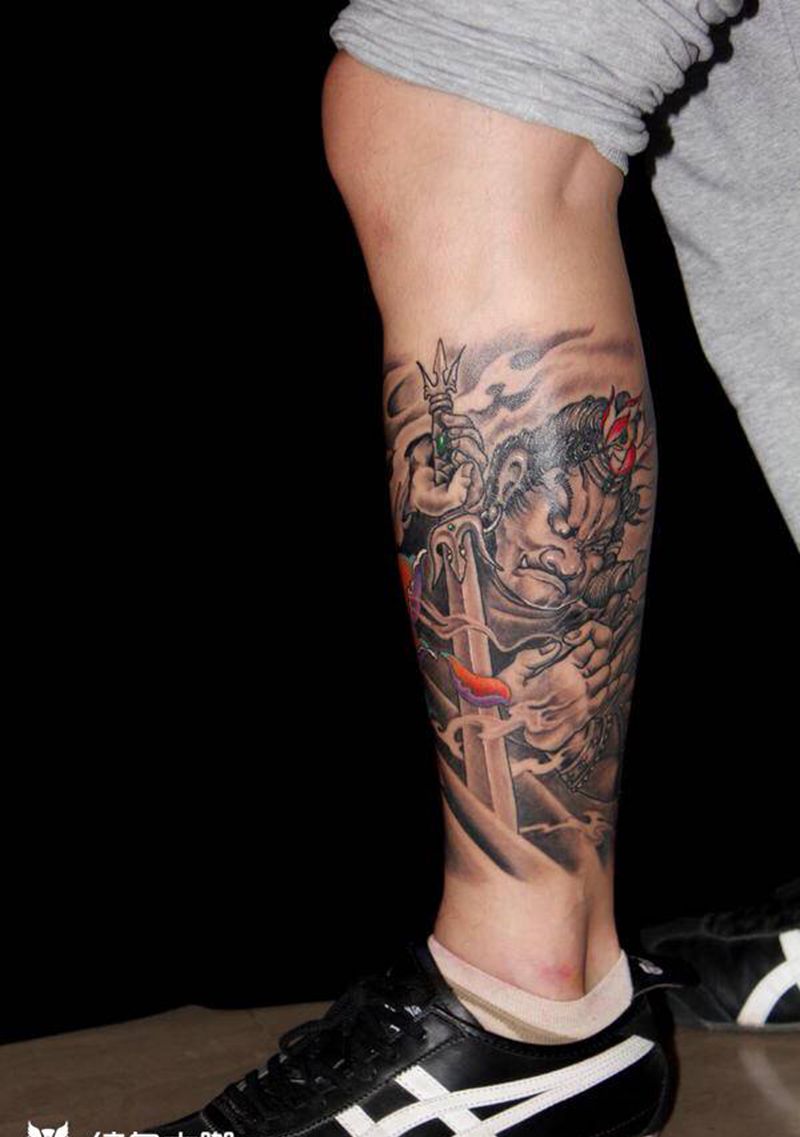 不动明王纹身图片_腿部脚部新传统欧美写实纹身图案