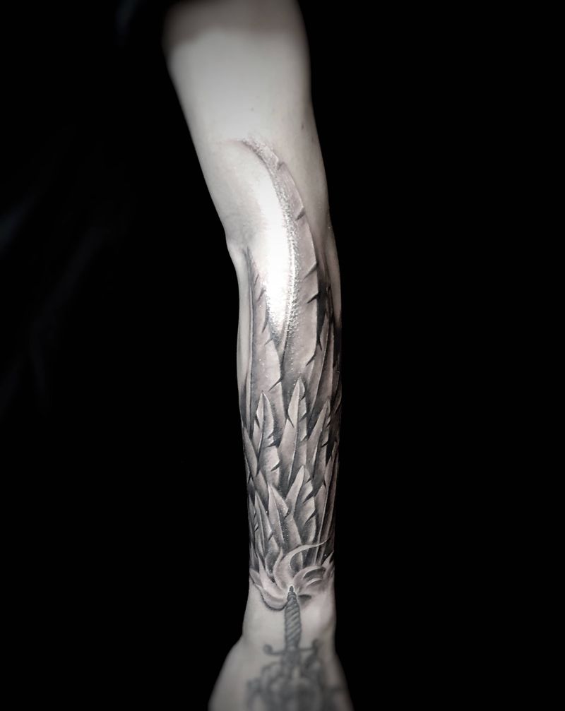 当前位置: 首页 >广东省深圳市纹身店-峰刺青纹身工作室纹身图案>翅膀纹身图片_手臂欧美写实新传统羽毛纹身图案