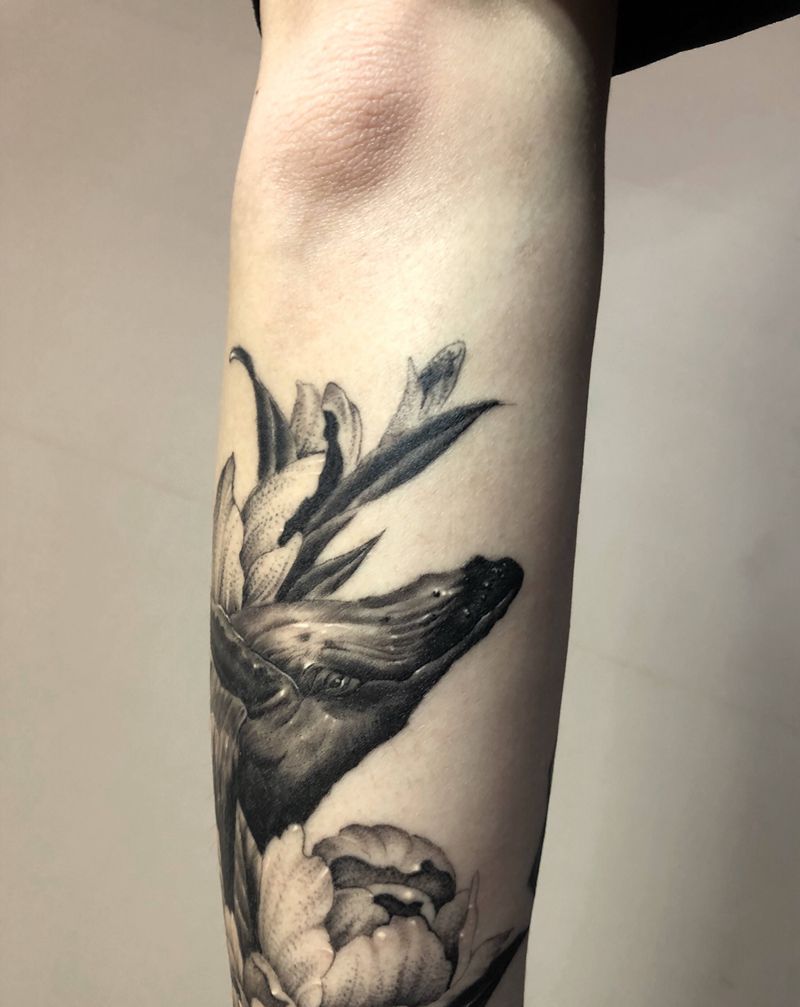 当前位置: 首页 >广东省深圳市纹身店-峰刺青纹身工作室纹身图案>鲸鱼纹身图片_手臂手部欧美写实点刺纹身图案