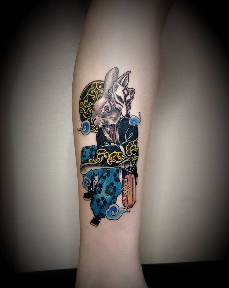 当前位置: 首页 >广东省深圳市纹身店-峰刺青纹身工作室纹身图案>兔子纹身图片_脚部腿部新传统New School纹身图案