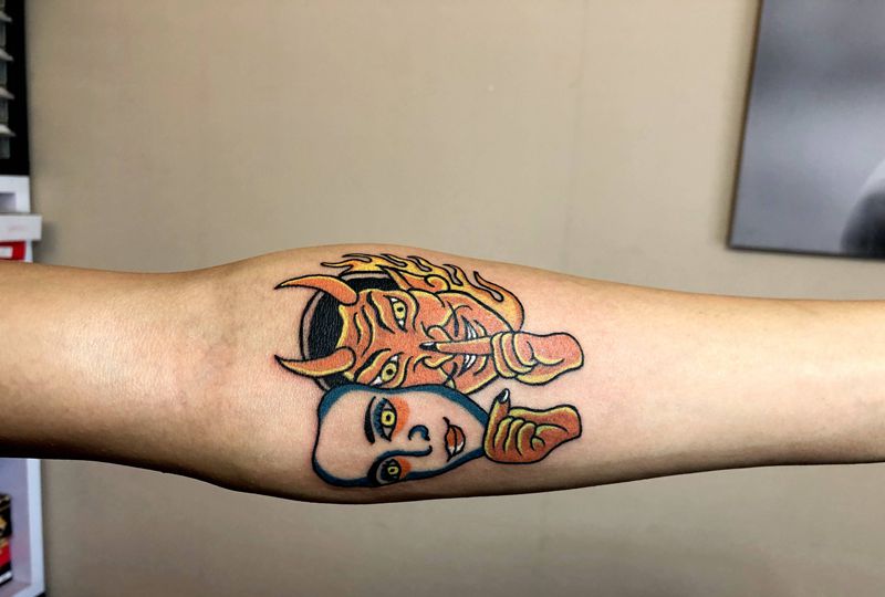 当前位置: 首页 >广东省深圳市纹身店-峰刺青纹身工作室纹身图案>恶魔纹身图片_手臂Old School纹身图案