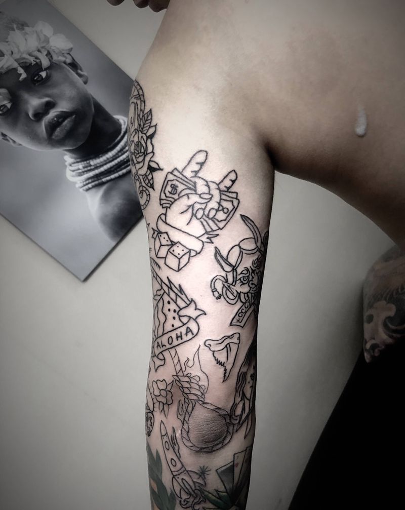当前位置: 首页 >广东省深圳市纹身店-峰刺青纹身工作室纹身图案>拼接花臂 未完纹身图片_Old School纹身图案